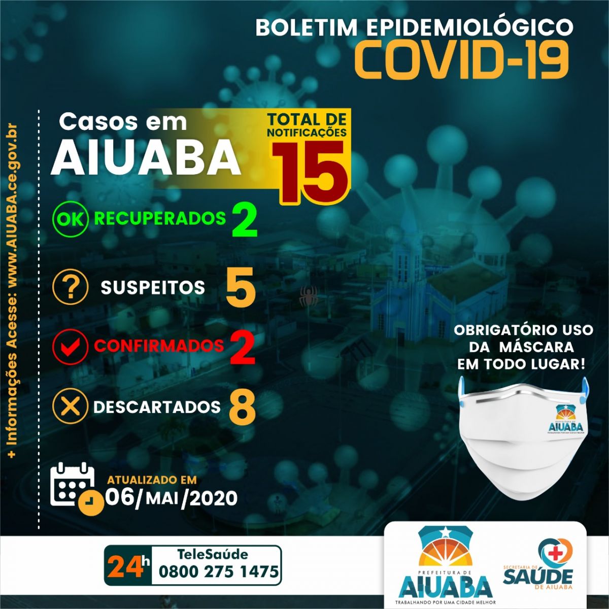 A Secretaria de Saúde do município de Aiuaba divulgou boletim epidemiológico na noite de ontem(06), informando que os dois pacientes que testaram positivo para o Coronavírus receberam alta após o período de quarentena. Com isso, o município zera o número de casos confirmados.