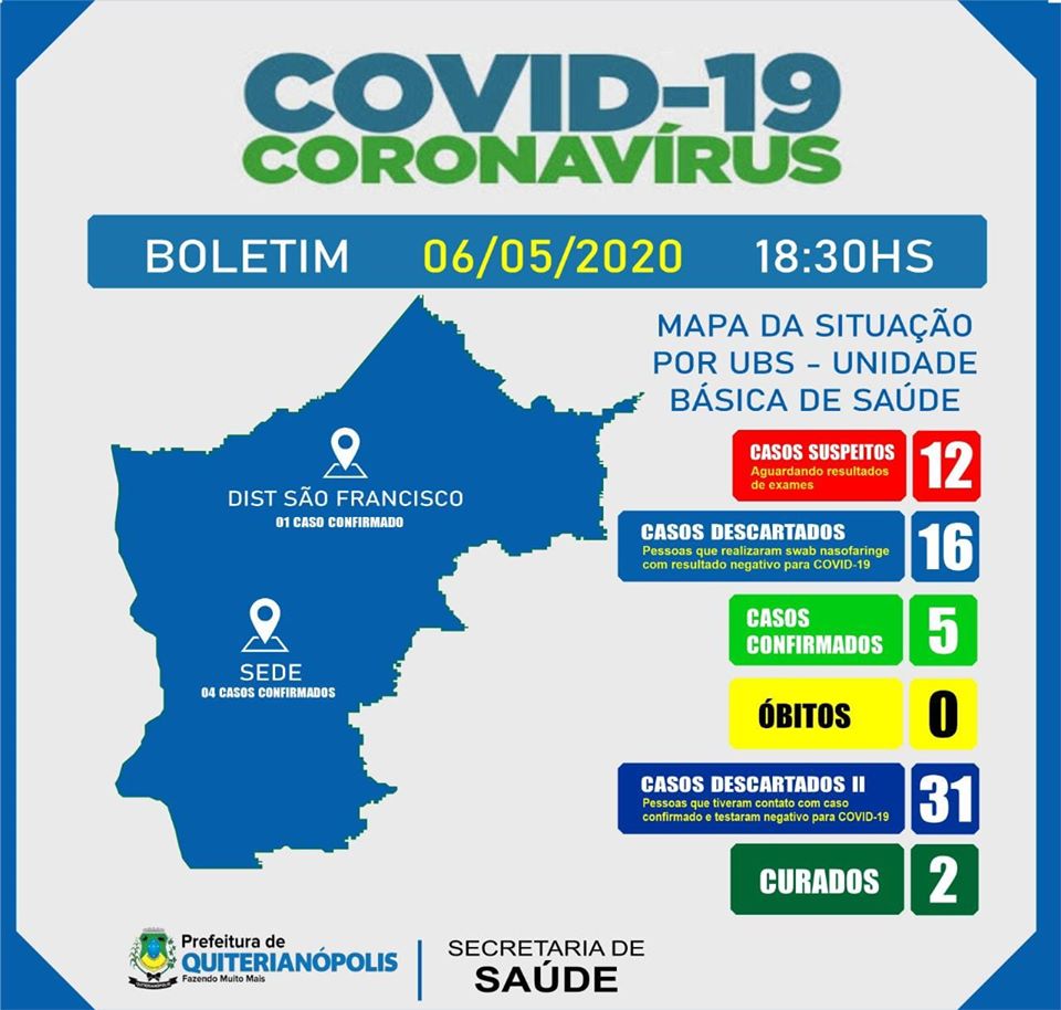 O número de casos confirmados também aumentou no município atingindo 5 confirmações, sendo 4 na cidade e 1 no distrito de São Francisco.