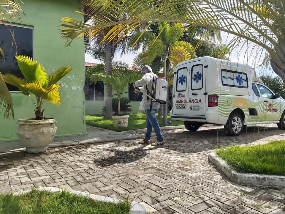 A Equipe de Endemias está intensificando a pulverização usando um produto a base de hipoclorito nas paredes, portas e calçadas das ruas onde o fluxo de pessoas é maior.