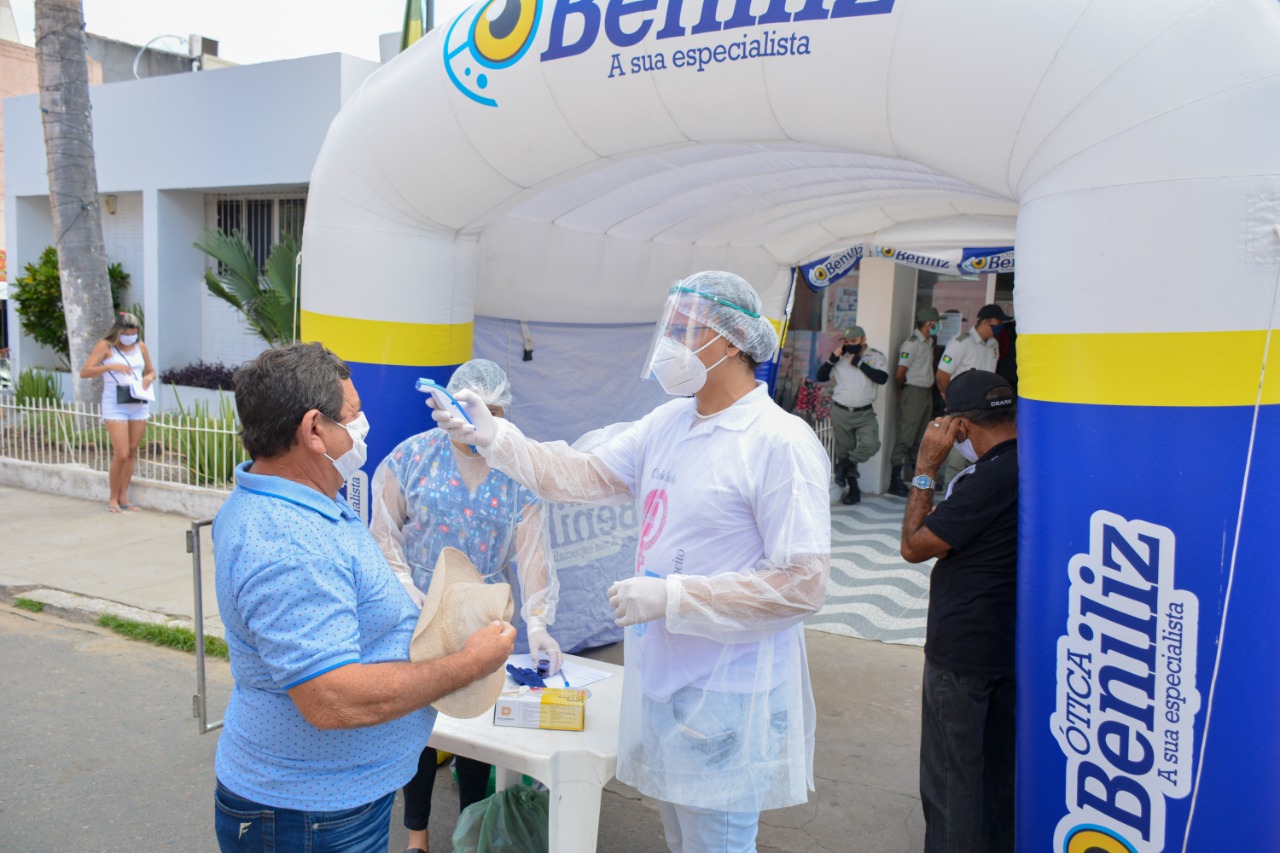 A Secretaria de Saúde de Mombaça deu início ao trabalho de aferição de temperatura e saturação de pessoas que aguardam atendimento na fila do banco Bradesco, e ainda fazem a higienização das mãos dos usuários da rede bancária. A ação compõe o pacote de medidas para conter o avanço do novo Coronavírus em Mombaça.