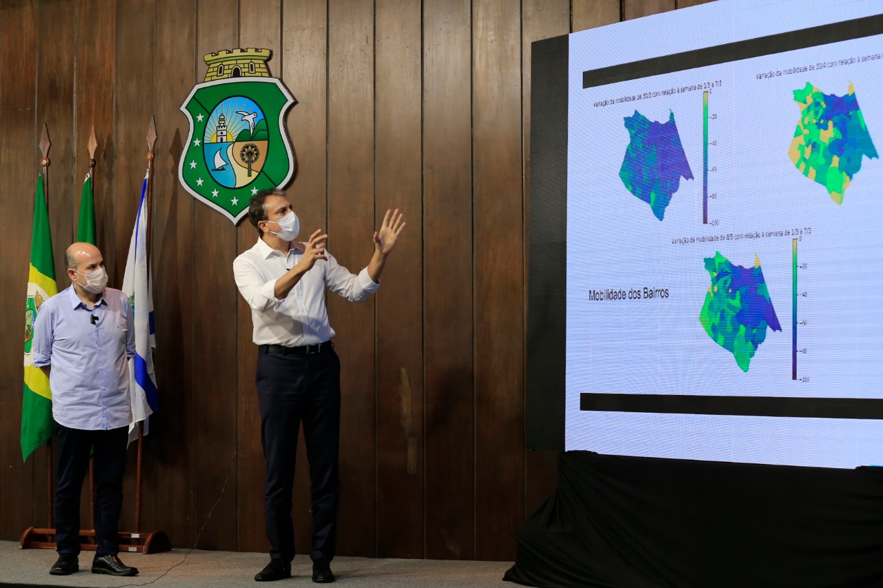 Durante o anúncio, houve a apresentação da comparação de três momentos pós decretos de isolamento social em Fortaleza. No primeiro, sucesso primeira semana, inclusive com bairros da Capital ultrapassando os 60%. Depois houve um relaxamento, e o consequente aumento de casos de coronavírus. Até chegarmos ao isolamento mais rígido, demonstrando que houve uma melhora ao atingir o pico de 55% de isolamento.