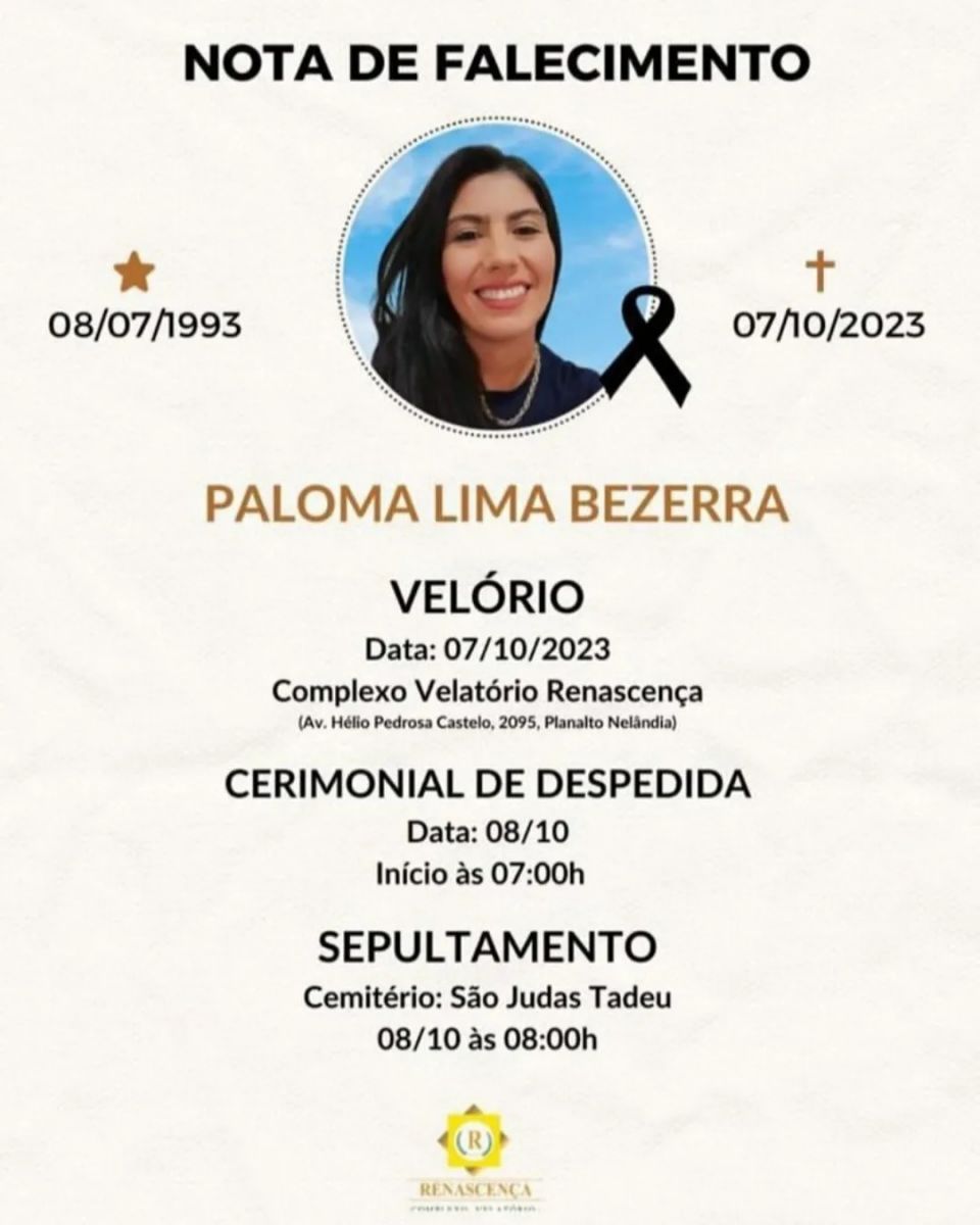 O corpo será velado no Complexo Renascença e o sepultamento acontecerá às 8h da manhã deste domingo (08/10), no Cemitério São Judas Tadeu, em Tauá.