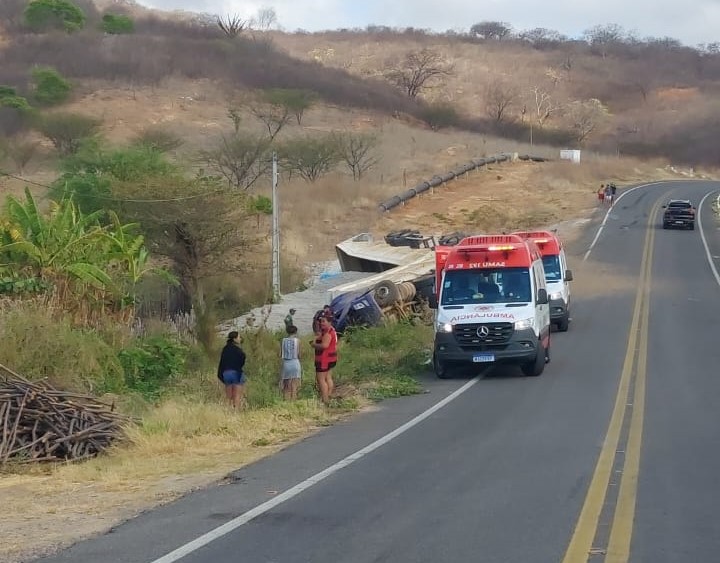 O tombamento de uma carreta Bi-trem Volvo, cor azul, placas AZP 1G18, com inscrição de Nova Santa/Paraná, na manhã de hoje (08/10), na CE-176, na zona rural de Arneiroz, provocou a morte do motorista Luiz Nivaldo Marcucci, 57 anos, que ficou preso as ferragens.
