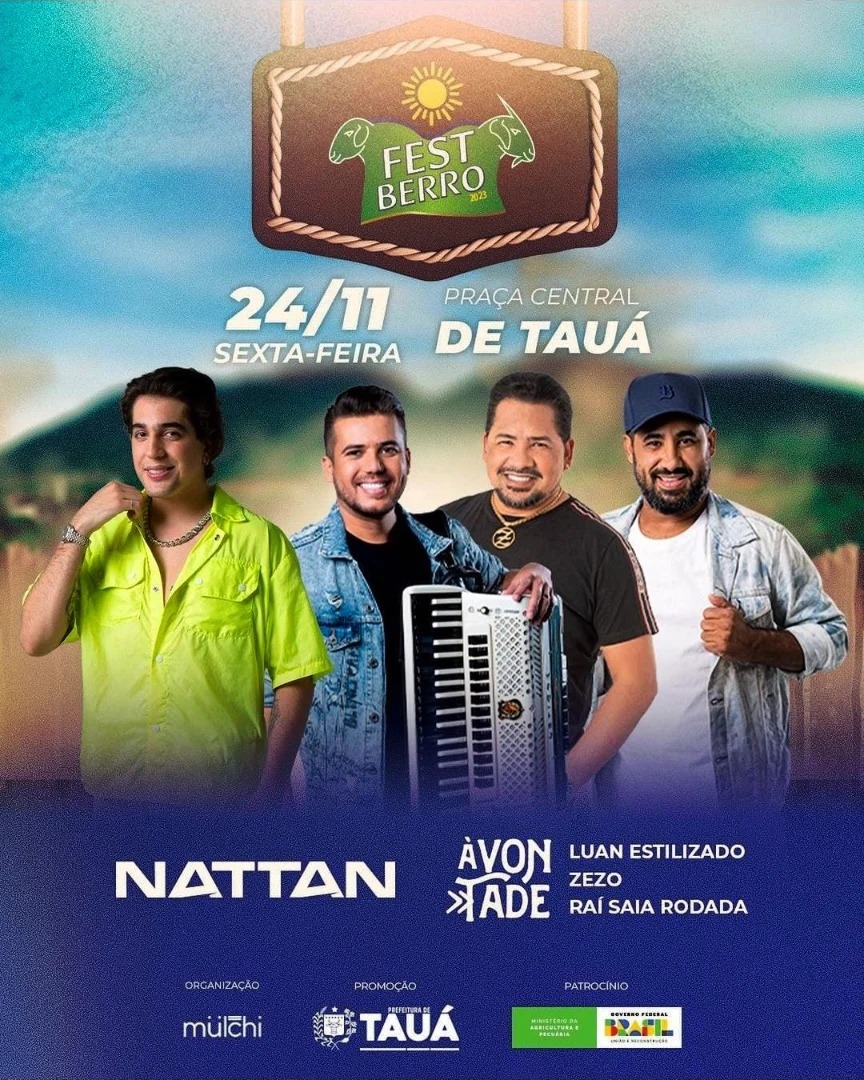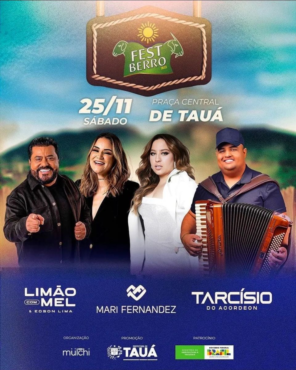 Nos dias, 24 e 25 de novembro, na Praça Dr. Alberto Feitosa Lima, no centro de Tauá, acontecerão shows com grandes atrações nacionais e artistas da terra (a serem anunciados).
