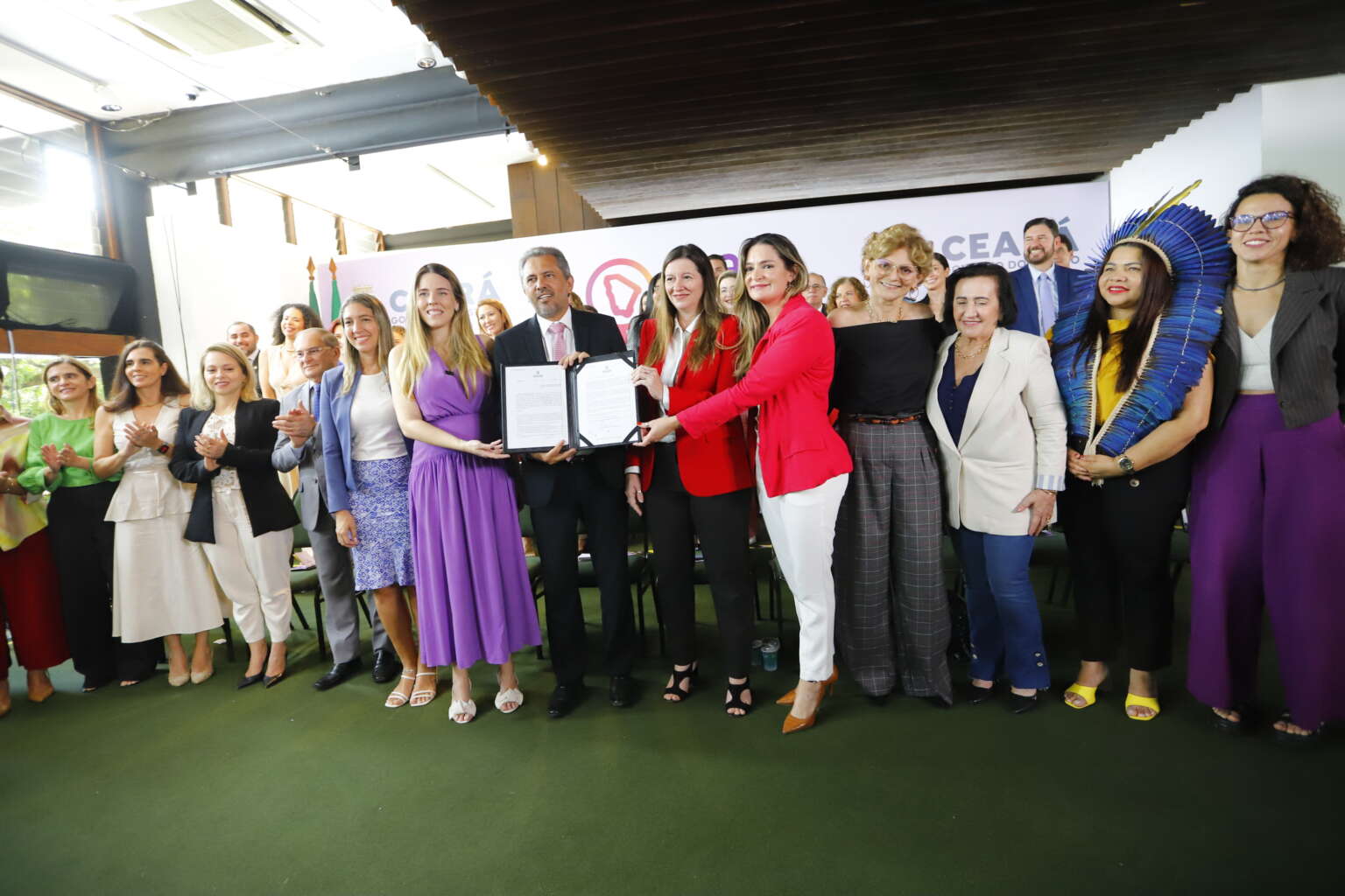 Com foco na proteção das mulheres e por mais igualdade de gênero, o Governo do Estado lançou, na manhã desta terça-feira (21), no Palácio da Abolição, em Fortaleza, o Programa Ceará por Elas. Na oportunidade, o governador Elmano de Freitas, acompanhado da vice-governadora Jade Romero, assinou o decreto que institui o programa. Também estiveram presentes outras autoridades e representantes dos movimentos de mulheres.