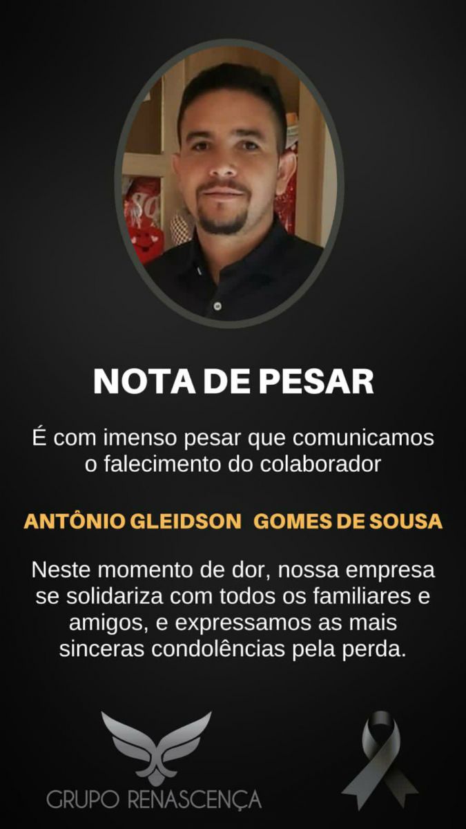 Será sepultado às 16h de hoje (26), no Cemitério São Judas Tadeu, em Tauá, o corpo do motorista Antônio Gleidson Gomes de Souza, motorista da Funerária Renascença. Ele foi encontrado sem vida em sua residência situada na Rua Geraldo Matias do Carmo, no Bairro Manoel Alves Mota.