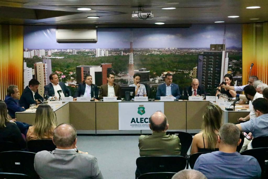 A comissão de Agropecuária da Assembleia Legislativa realizou nesta quinta-feira (30) audiência pública para discutir a isenção de ICMS para as operações que envolvam os bovinos transportados em pé. A audiência foi proposta pela deputada estadual Gabriella Aguiar, que presidiu os trabalhos, e pelo deputado Simão Pedro. E contou com as presenças do deputado federal Domingos Neto; do superintendente da Codevasf no Ceará, Marlos Costa; do superintendente do Ministério da Agricultura no Ceará, Odilon Aguiar; e lideranças do setor agropecuário no Estado.