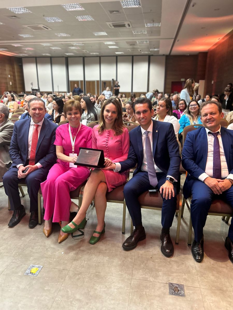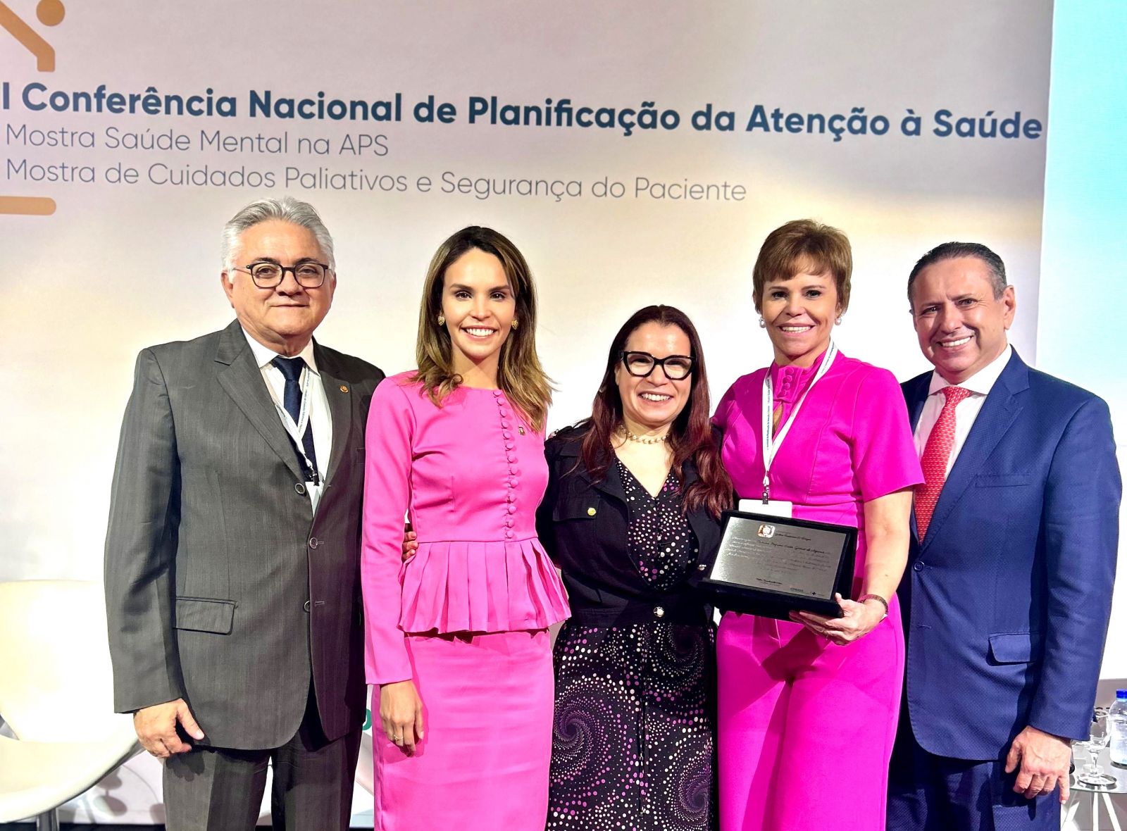 Patrícia Aguiar recebeu o reconhecimento ao lado do ex-vice-governador Domingos Filho; da deputada estadual Gabriella Aguiar; do deputado federal Domingos Neto; do secretário-executivo do Conass, Jurandi Frutuoso; da secretária da Saúde do Estado, Tânia Mara Coelho, e do ex-coordenador da Fiocruz no Ceará e um dos maiores defensores da Planificação da saúde, Carlile Lavor.