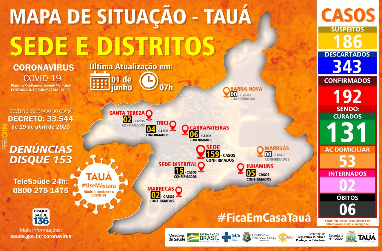No boletim anterior divulgado na tarde do último sábado(30), Tauá tinha 190 casos confirmados com 123 curados e 61 pacientes infectados.