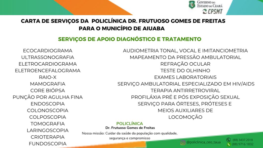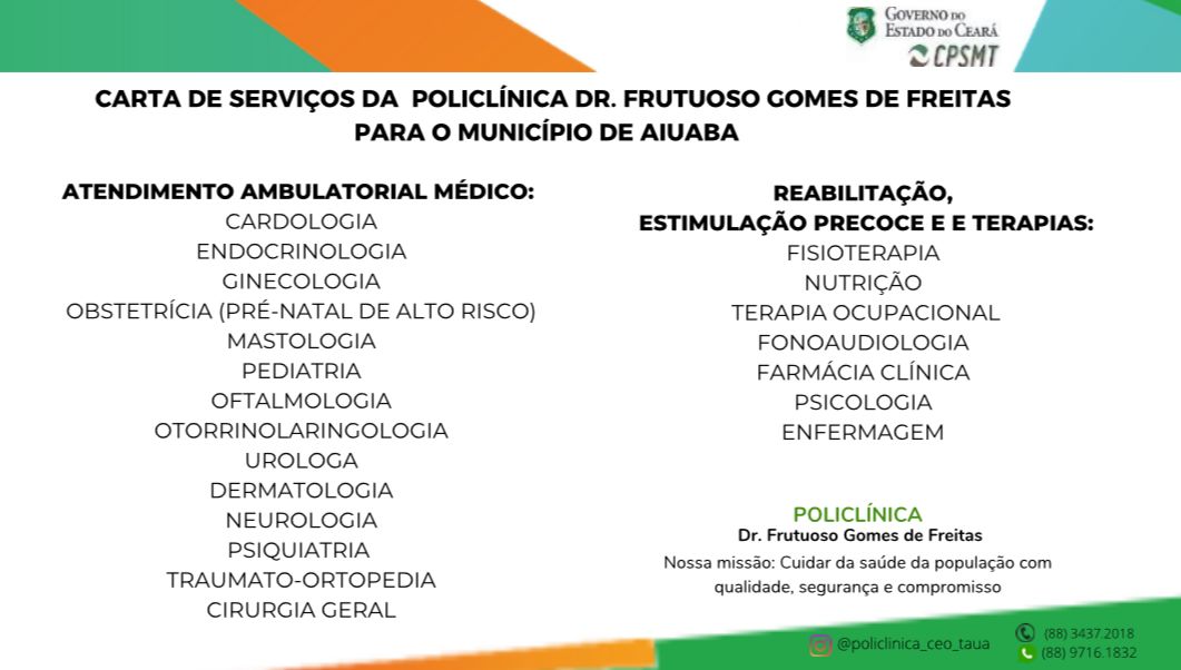 Veja os atendimentos disponíveis na Policlínica Dr. Frutuoso Gomes de Freitas