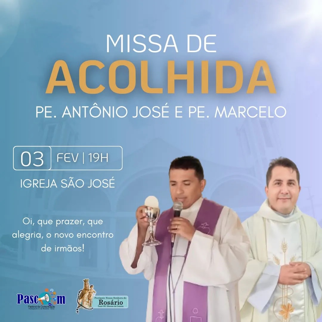 A Paróquia de Nossa Senhora do Rosário, em Tauá, celebra hoje (03/02), a Missa de Acolhimento dos novos Padres designados pela Diocese de Cratéus.