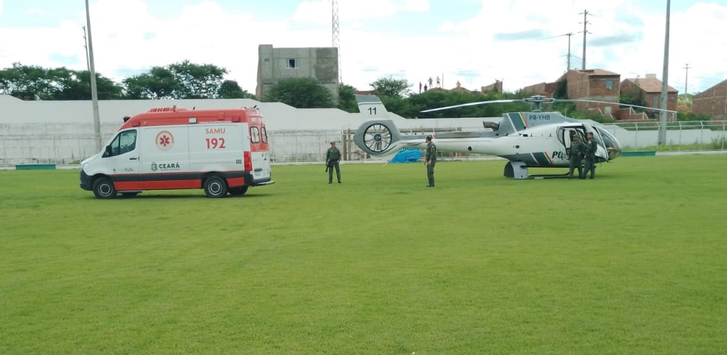 Uma ambulância do SAMU foi acionada, mas devido a gravidade do quadro clínico do paciente, foi solicitado o apoio do helicóptero, que transferiu a vítima para o Hospital, situado na cidade de Juazeiro do Norte.