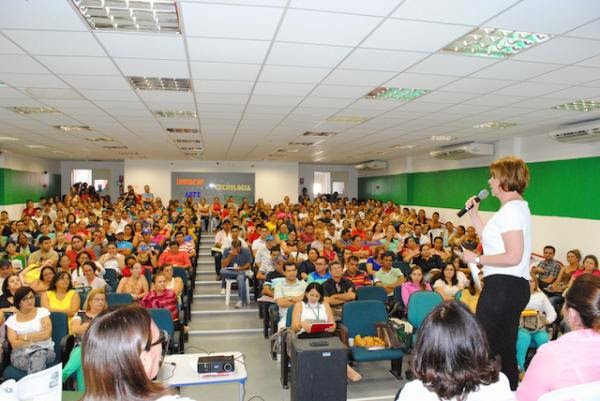 Imagem de um dos momentos da planificação com a Prefeita Patrícia Aguiar, técnicos e profissionais de saúde em 2014, no Auditório da Escola Profissional Monsenhor Odorico de Andrade, em Tauá
