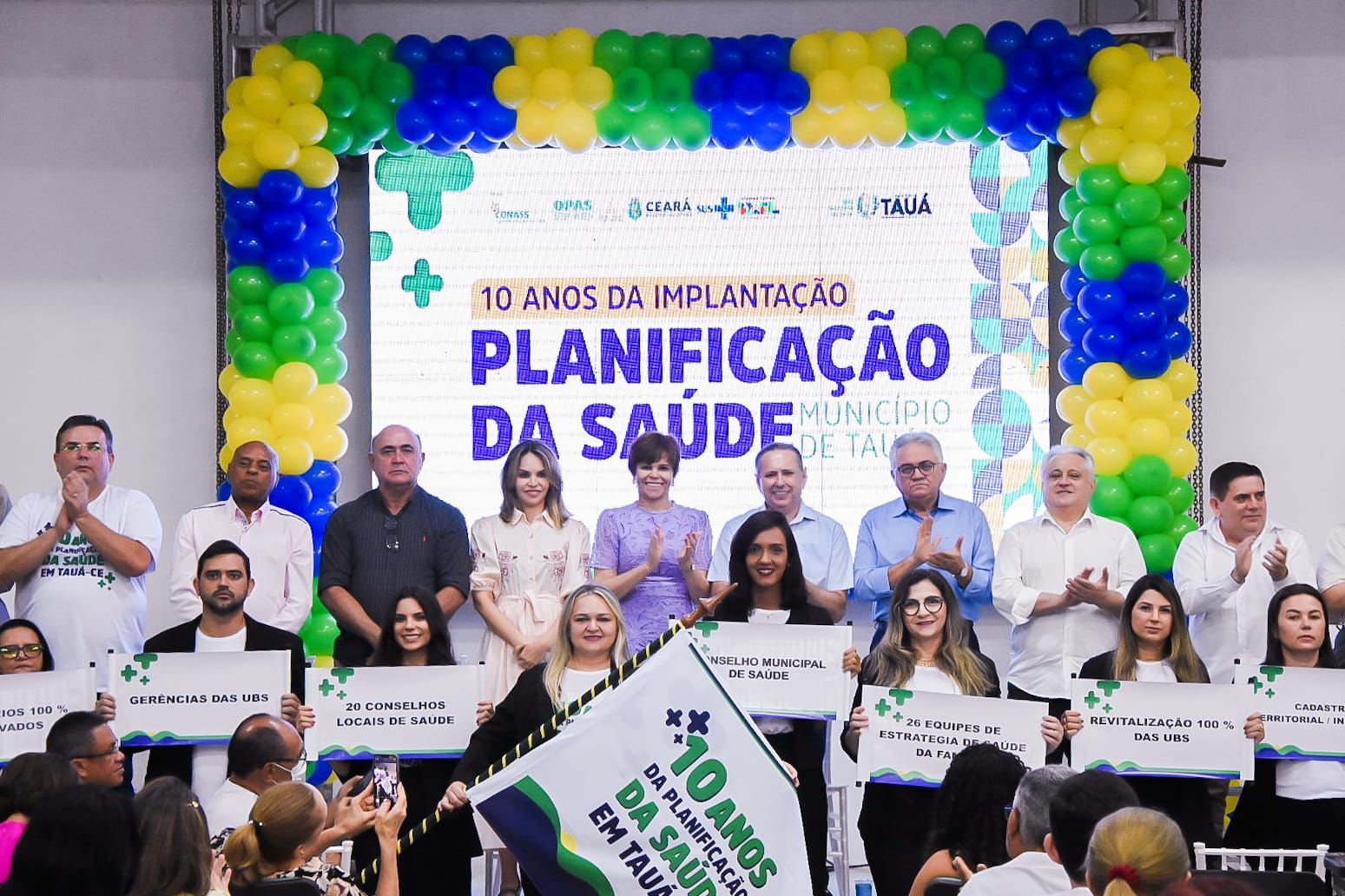 Estiveram presentes à solenidade: Raquel Carvalho, da Secretaria da Saúde do Estado, representando a secretária Tânia Mara Coelho; Marco Antônio Bragança de Matos, Rúbia Pereira Barra e Maria José Evangelista (do Conass); Ivana Barreto, da Escola de Saúde Pública, lideranças políticas e centenas de profissionais da saúde de Tauá.