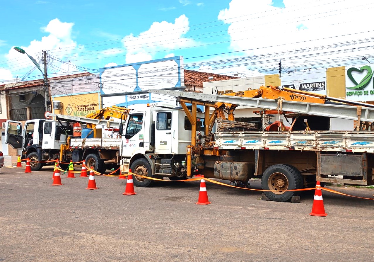 As equipes já estão posicionadas no local desde o início da manhã e farão a substituição de dois postes e remoção de cabos elétricos.