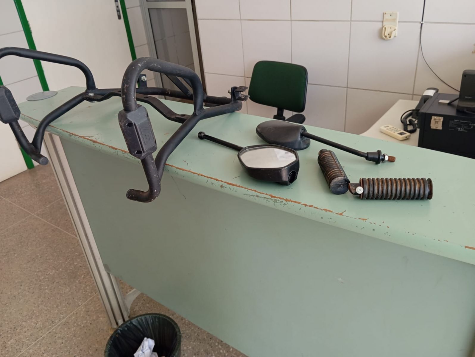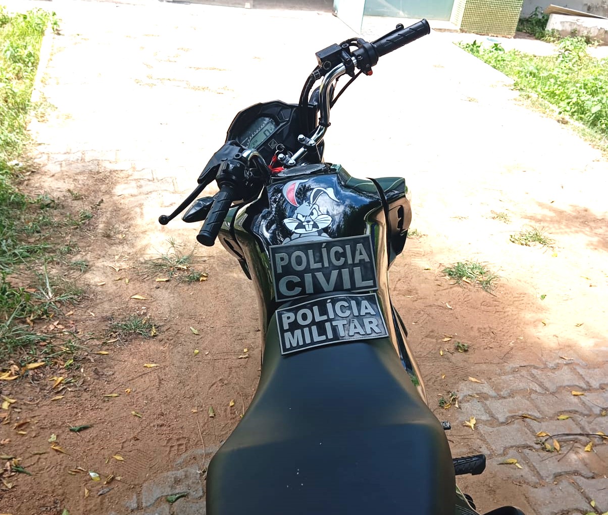Uma moto furtada na madrugada de ontem (21), na Rua Cazé Noronha, no Bairro Beleza, foi recuperada, no centro da cidade, sem placa. Parte das peças foi recuperada com dois homens na localidade Merejos, distante dois quilômetros da Sede do Município. Os presos são Tainara P. A, 19 anos, Jeferson F. P. O, 22 anos, V. P. Moreira, 22 anos e V. S. Cardoso, 18 anos.