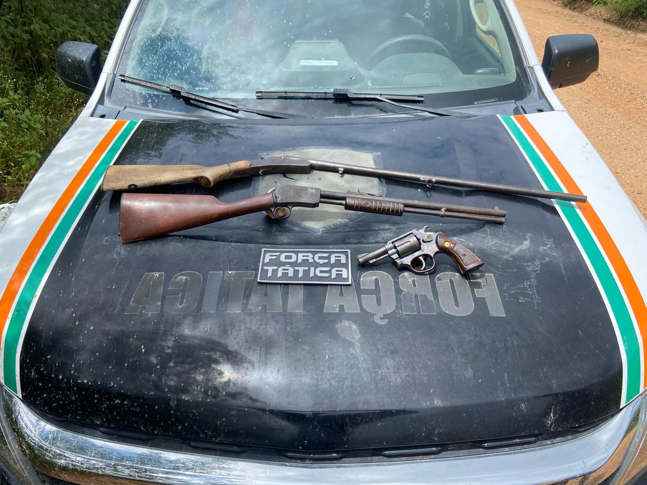 A Força Tática do 13º BPM, em Tauá, apreendeu três armas na manhã de hoje (10), na zona rural do município de Aiuaba.