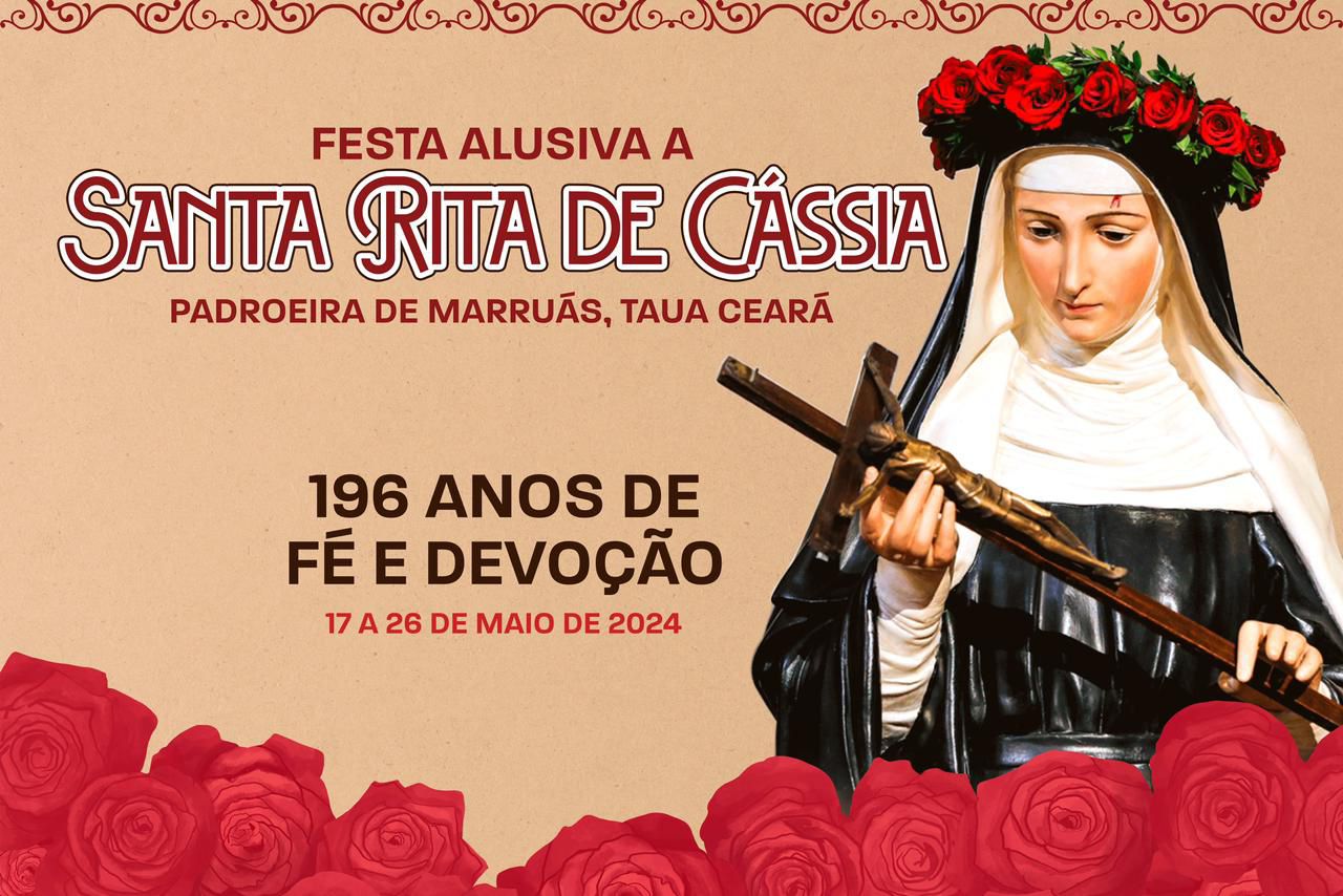 Começa nesta sexta-feira (17/05), a Festa de Santa Rita de Cássia, Padroeira do Distrito de Marruás, na zona rural do município de Tauá, que completa 196 anos de Fé e Devoção. Todos os dias serão realizados, o café comunitário às 5h da manhã e novenas a partir das 19h.