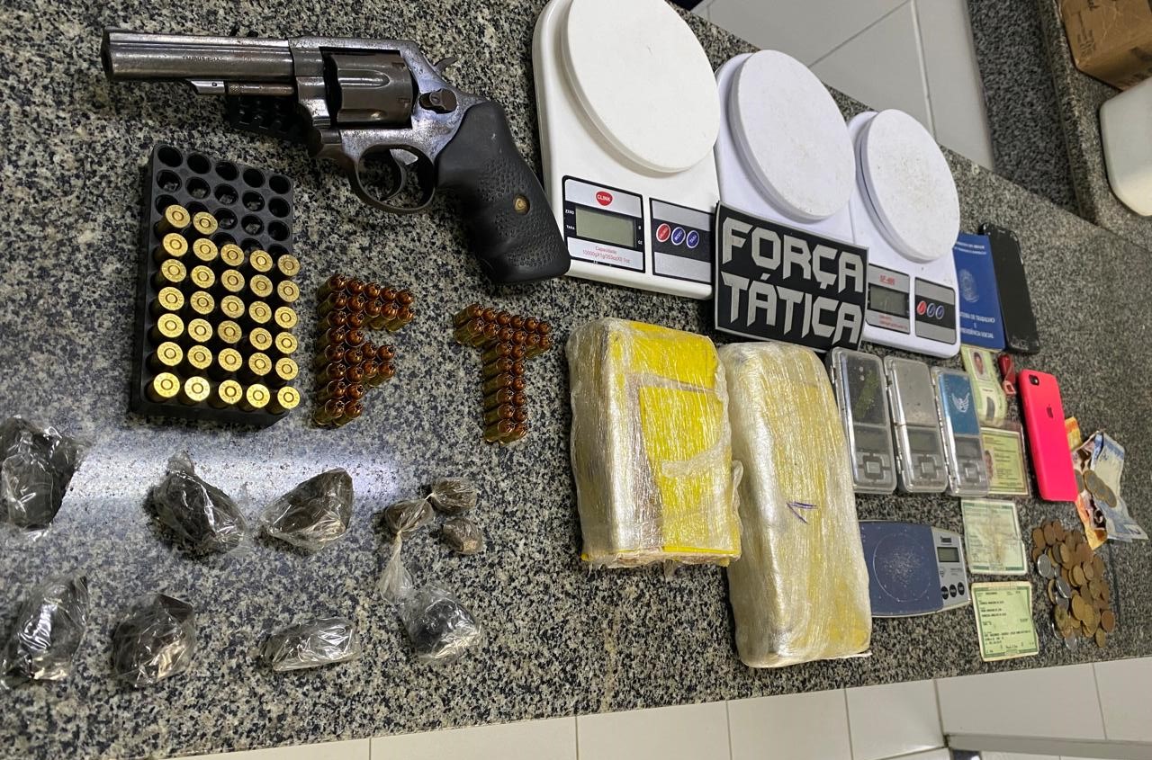 A Força Tática do 13º BPM apreendeu drogas, arma e munição em Tauá.