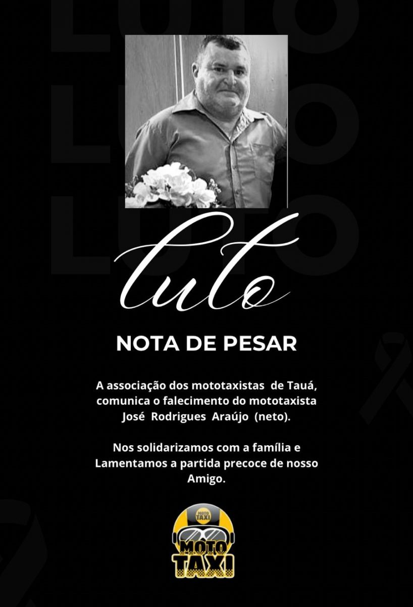 O mototaxista José Araújo Rodrigues, 50 anos, faleceu ontem (15/08), quando estava sendo transferido para Fortaleza.