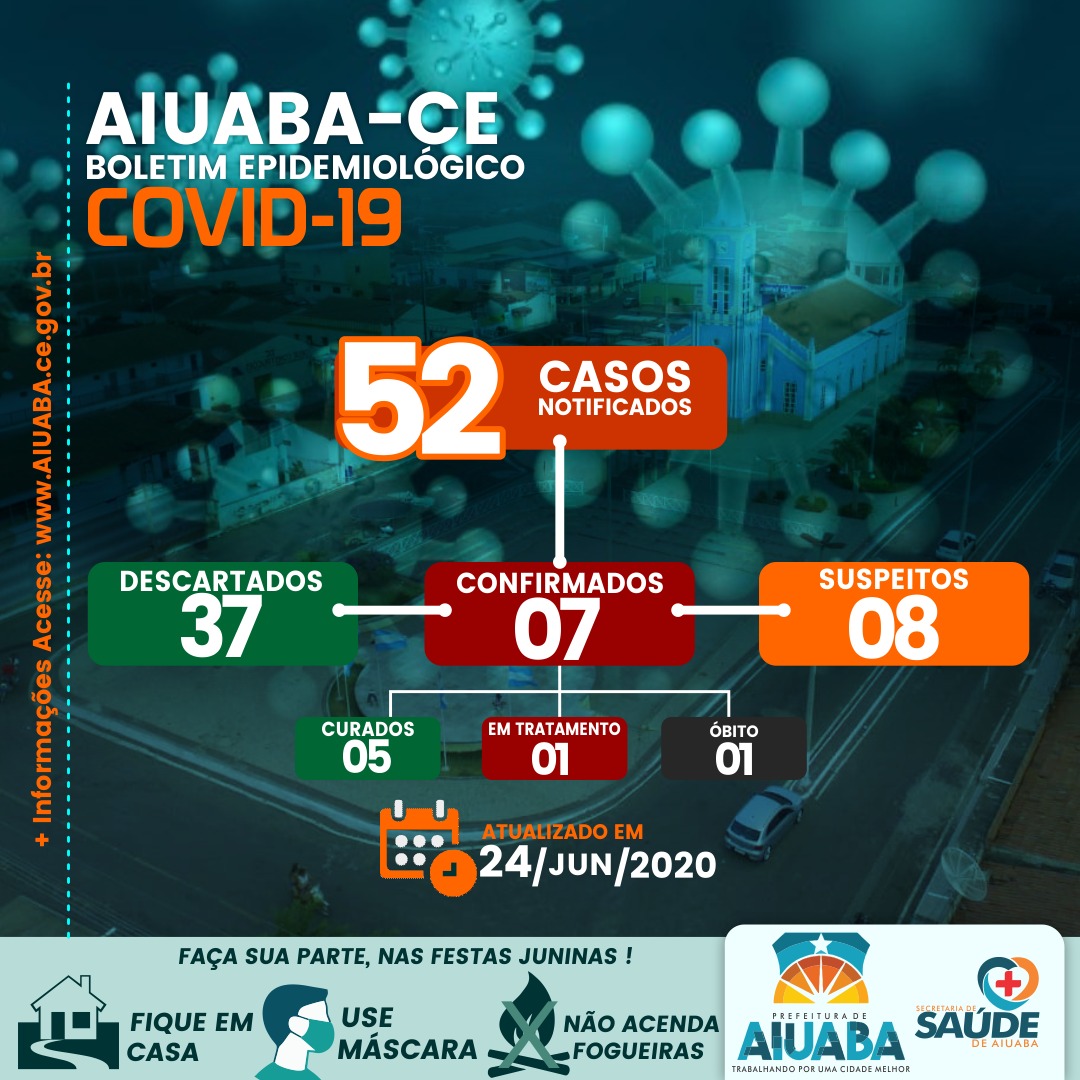 "Recebemos o resultado do exame hoje(24) e infelizmente foi confirmada a primeira morte por Covid-19 em Aiuaba. Lamentamos profundamente e orientamos que a população continue seguindo as medidas de isolamento social em todo o município", disse a Secretária Lindalva Moraes.
