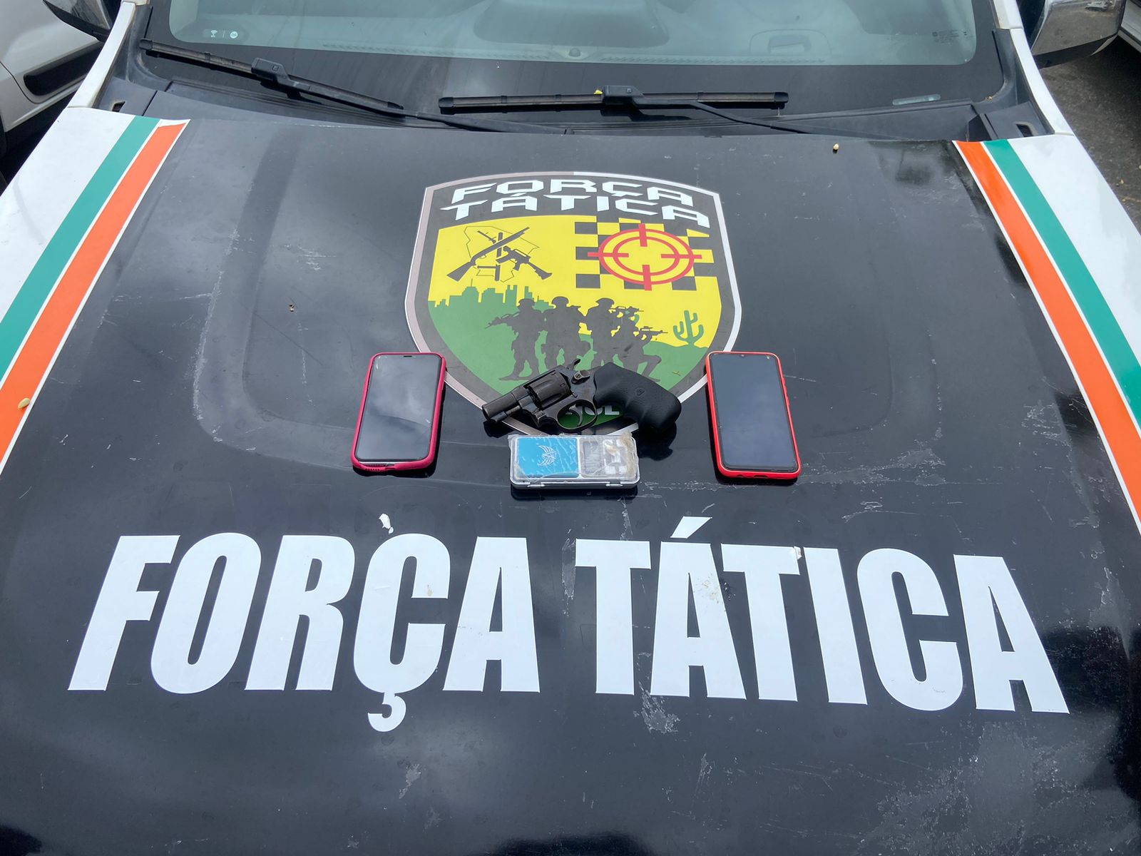 A equipe BRAVO da Força Tática recebeu denúncia de populares sobre a existência de um revólver em uma residência na Rua Professora Liduína Gonçalves Vale, no Bairro Tauazinho, em Tauá.