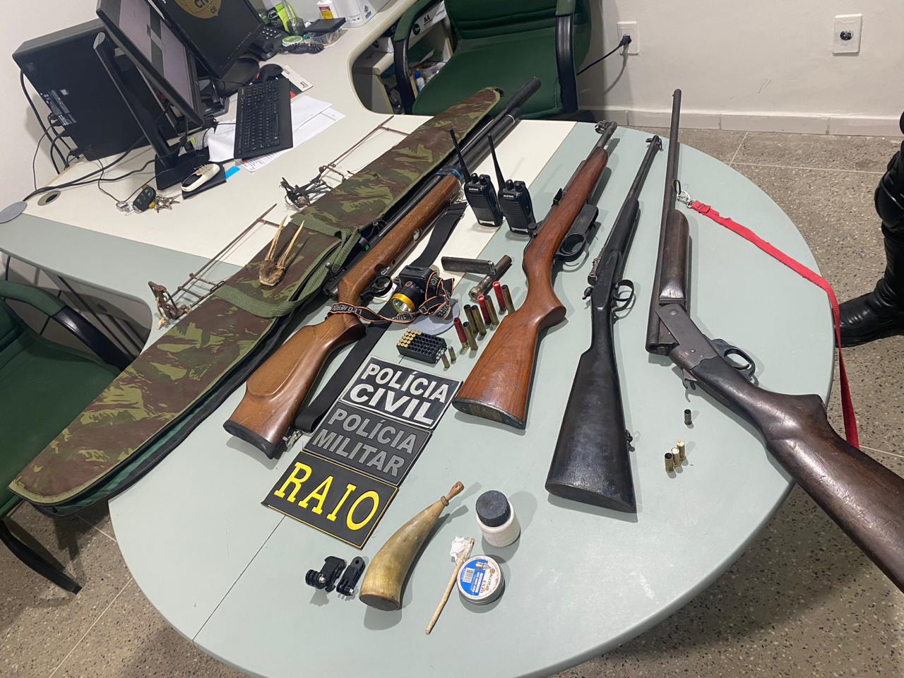 Uma operação policial culminou na apreensão de armas, munições e cigarros nos municípios de Parambu e Quiterianópolis.