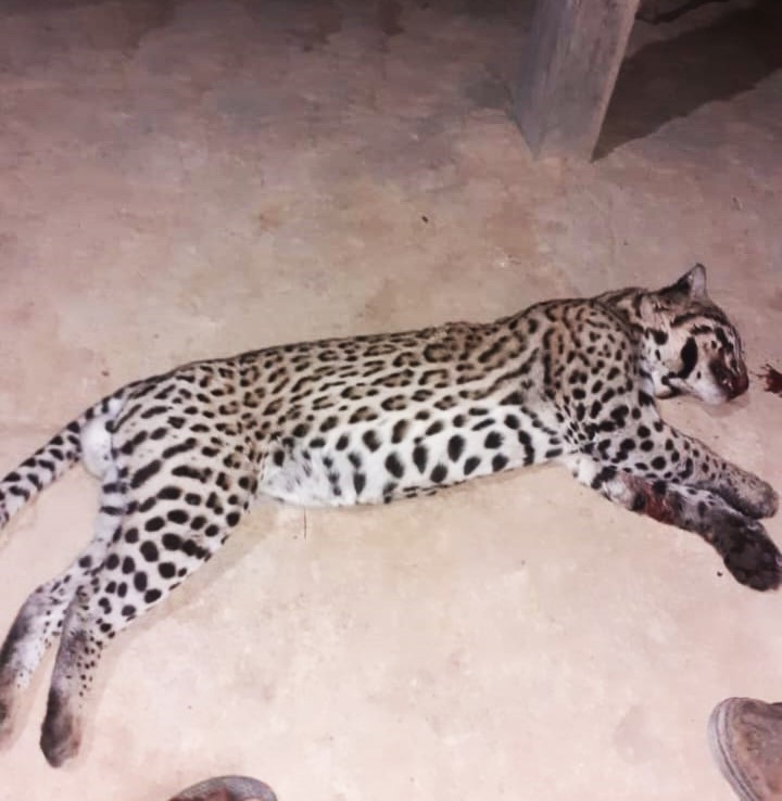 O animal morto é um filhote de onça pintada, que segundo o áudio que a Polícia recebeu, pesava 35kg.