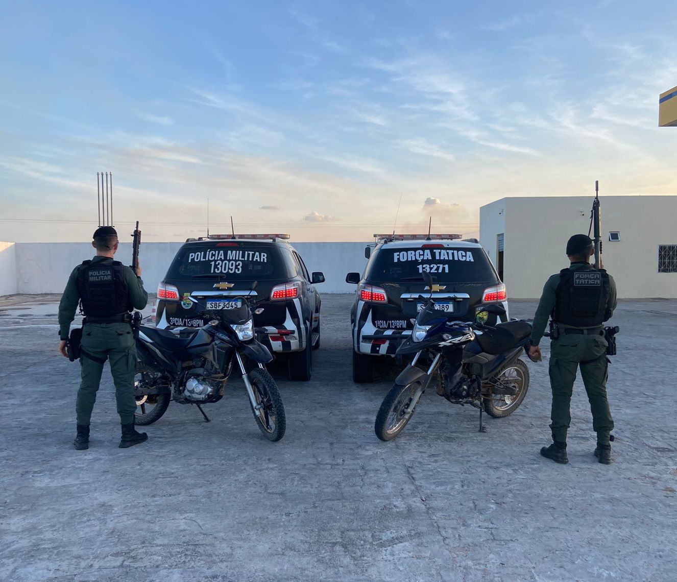 A equipe BRAVO da Força Tática em operação conjunta com a 3CIA do 13º BPM de Mombaça, realizavam patrulhamento na CE-363, abordagens a bares, edificações e identificações veiculares quando encontraram duas motocicletas no limite entre Mombaça e Tauá ambas com indícios de adulteração nos sinais identificadores.