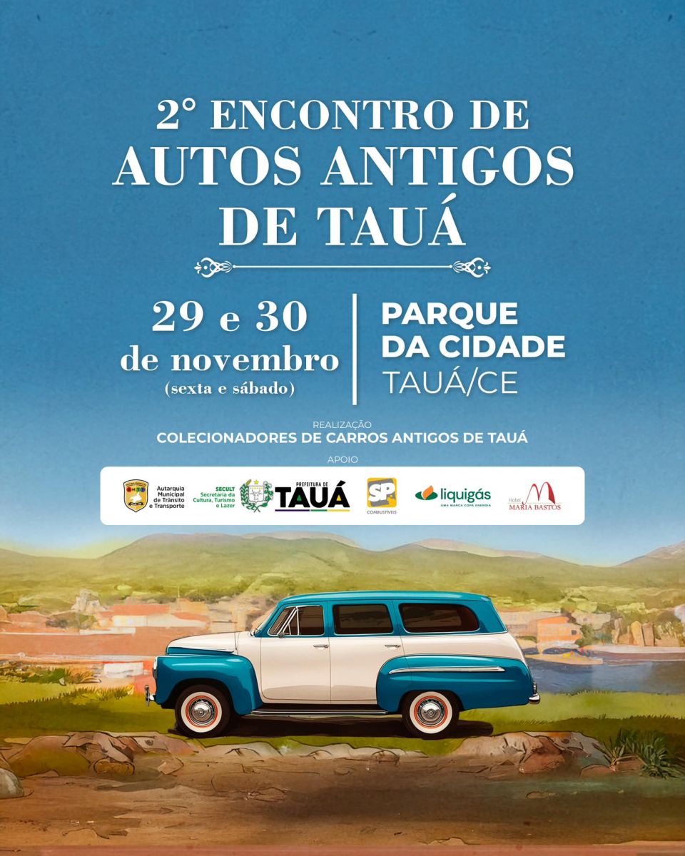 O evento organizado pelos empresários tauaenses Jeferson Massilon e Hildo Leitão, donos de coleções de veiculos antigos, acontecerá nesta sexta-feira (29/11) e sábado (30/11), no Parque da Cidade, contando com o apoio da Prefeitura de Tauá.