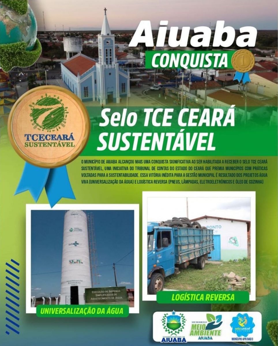 O município de Aiuaba ganhou o Selo TCE Sustentável 2024 nas áreas de Universalização de Água e Logística Reversa. O resultado final foi divulgado pelo Tribunal de Contas do Estado do Ceará na última sexta-feira (29/11).