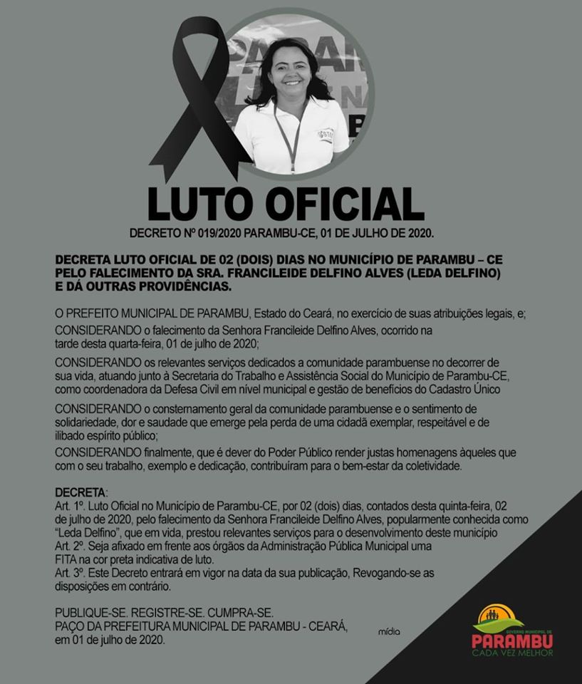 A prefeitura de Parambu divulgou notas lamentando o falecimento de Leda Delfino e destacando suas qualidades como técnica do município. Também foi decreto Luto Oficial de 2 dias.