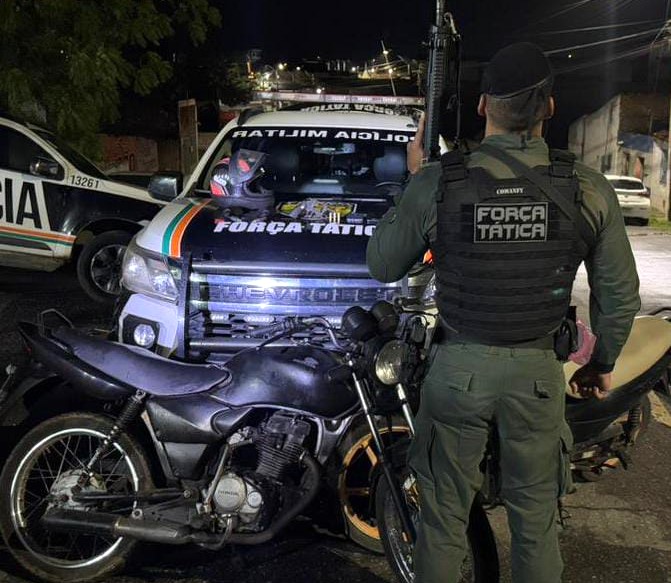 As equipes CHARLIE e BRAVO da Força Tática do 13º BPM apreenderam arma, munição, moto com indícios de adulteração e conduziram uma pessoa à Delegacia Regional de Polícia Civil de Tauá.