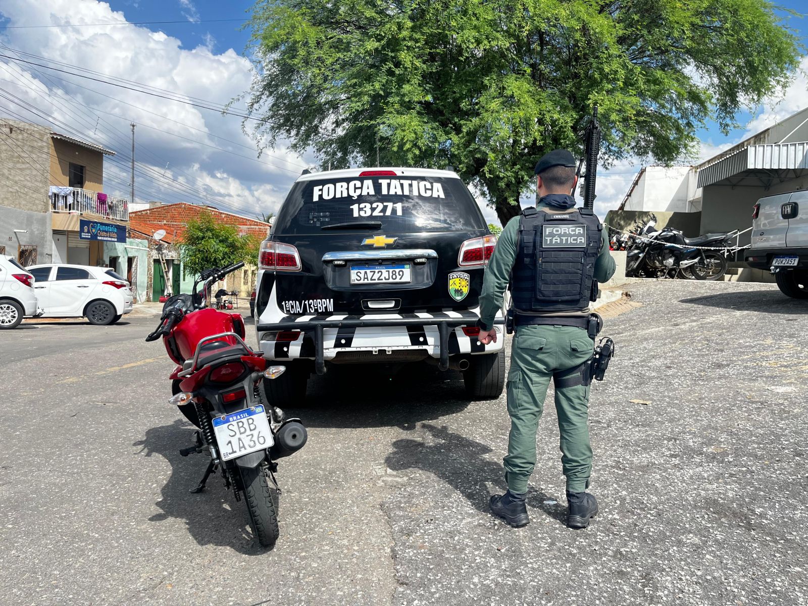 Por volta de 10h da manhã, a equipe Delta realizada patrulhamento na cidade de Mombaça, quando recebeu informações da inteligência do 13º BPM, sobre duas motocicletas, NXR BROS 160, ano 2024 e NXR BROS 150, ano 2013, com suspeitas de serem clonadas.