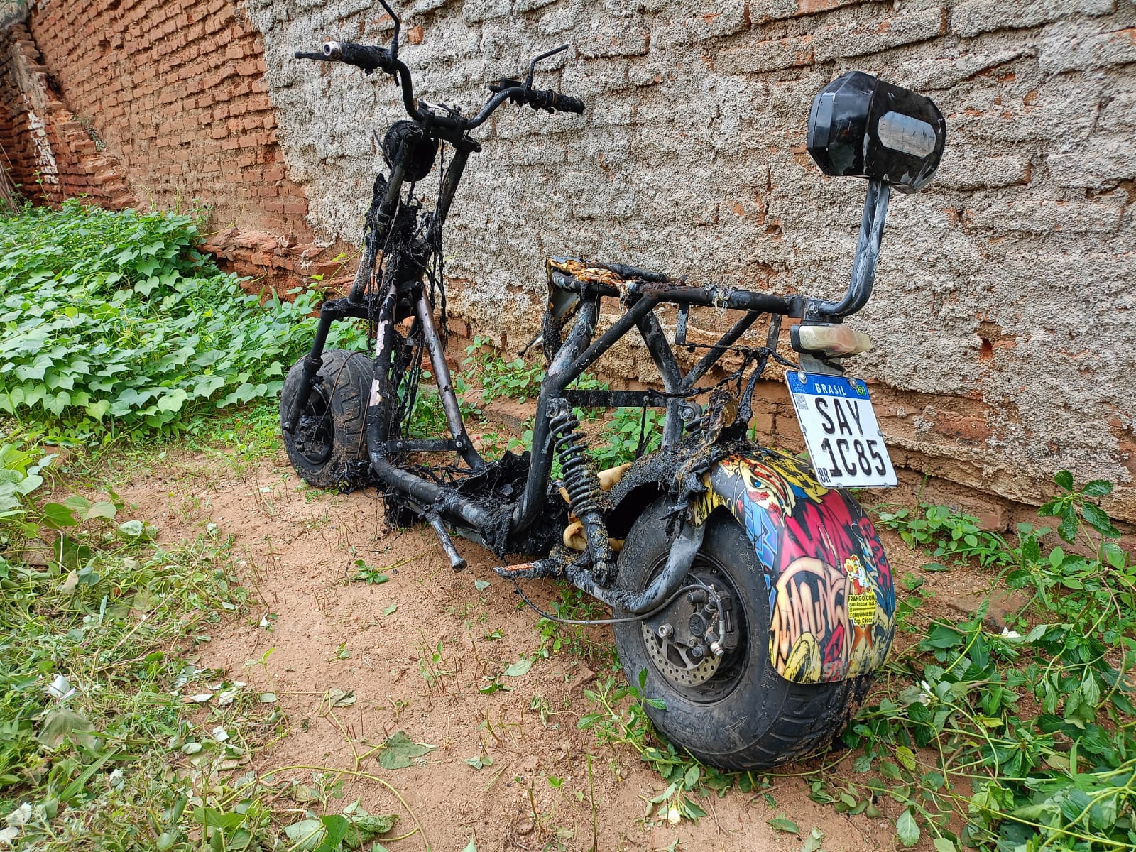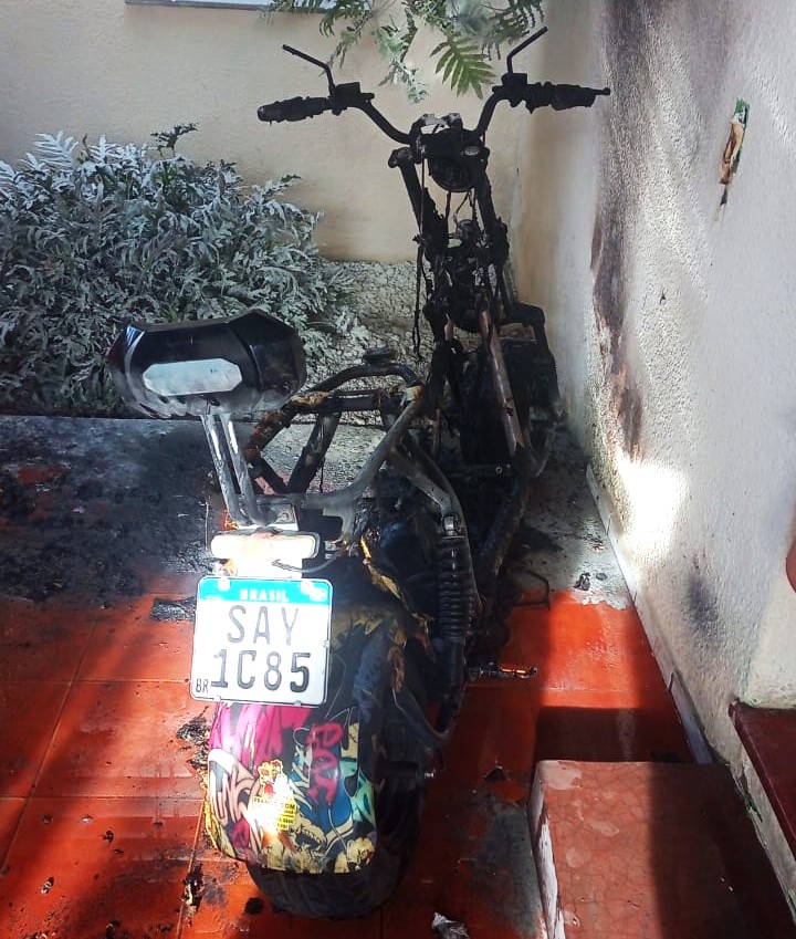 Uma moto elétrica marca Shineray, modelo Scooter PT3, cor grafite, placa SAY-1C85, ano 2022, pegou fogo no interior de uma residência na Av. Odilon Aguiar, em Tauá, no início da manhã de hoje (13/02).