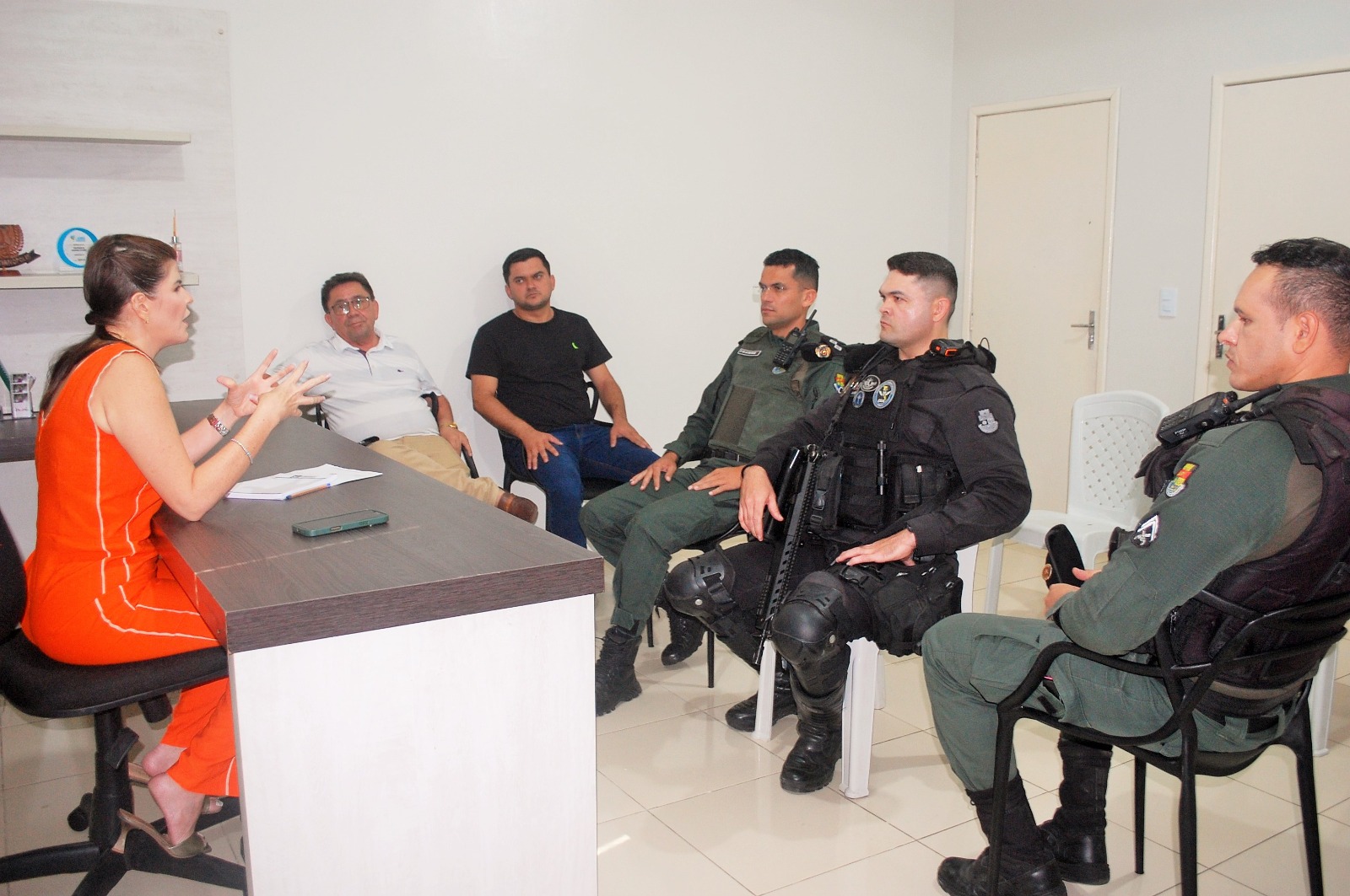 A reunião discutiu o fortalecimento da parceria entre e a gestão municipal e a Polícia Militar, a fim de garantir mais segurança para o município. Na ocasião, Dra. Juliana Abreu pediu a permanência de reforços policiais na cidade, ação que tem gerado resultados positivos no enfrentamento à criminalidade. “Estamos fazendo nossa parte, acolhendo e dando todo o suporte necessário para esse contingente que vem reforçar nossa segurança. Solicitamos a permanência desse reforço e de pronto fomos atendidos”, ressaltou. ´